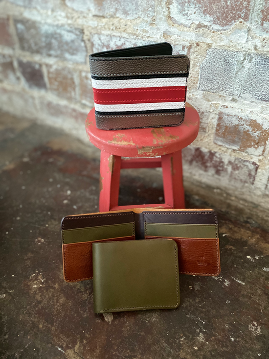 Choose from a variety of high quality leather and designs. Wallet styles include slim, bi-fold, and keychain. Or share your idea for a truly one-of-a-kind piece!